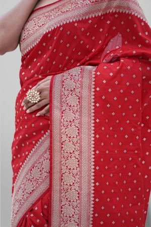 Our Commitment-We sell what we say. Every saree is handwoven with authenticity. Free from child labour and animal cruelty, carrying the purity of craft and the soul of Banaras.