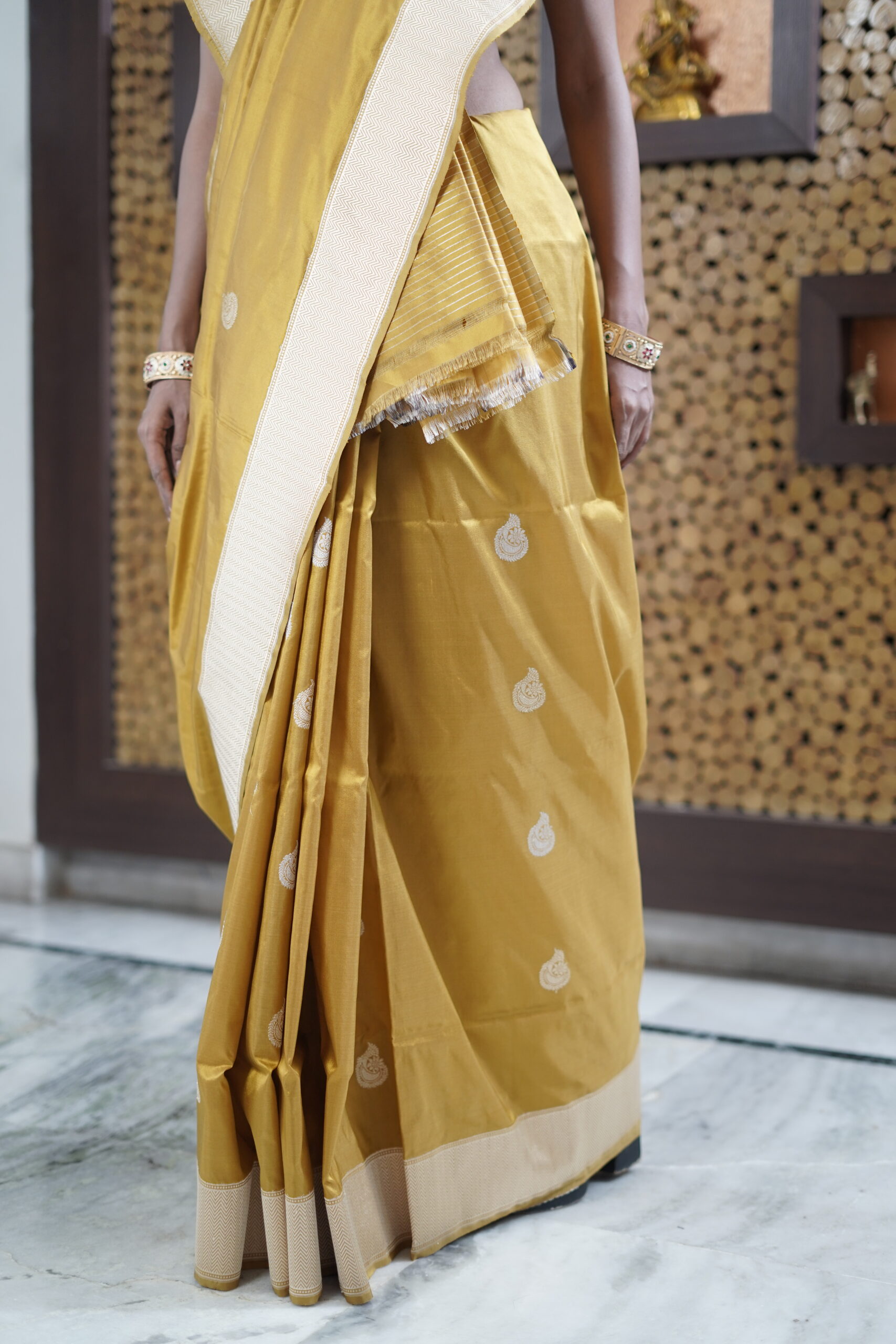 Product- Pure Handloom Banarasi Katan Silk Kadwa Sona- Rupa Border- Buti Saree